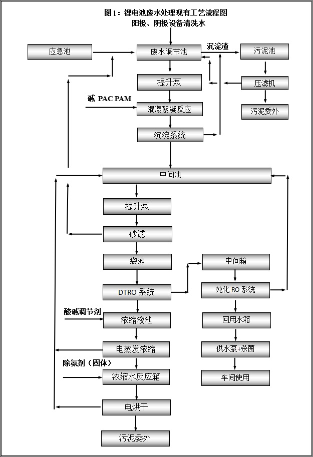 現有的水處理工藝,能夠處理成用戶用水要求的工藝眾多,不同的工藝有著不同的側重點。根據甲方產生的廢水性質、現場場地要求等綜合考慮,乙方選用全自動化程度最高的,勞動強度最小的,最環保的,性價比較高的工藝,即為預沉淀調節池+一體化沉淀+砂濾袋濾+DTRO膜濃縮+洗膜液與DTRO濃縮液采用電蒸發濃縮與電磁烘干+純化RO設備,干化的濃稠固狀委外。工程的主要內容為沉淀+過濾與DTRO單元+電蒸發濃縮單元+電磁烘干+純化RO單元及其附件、自控、儀表、電氣等的設計、制造,整套工程的指導安裝及系統的調試、運行;免費培訓技術、操作、維修人員,保證經過培訓人員能獨立操作該系統,并能獨立解決該系統日常操作及維修問題。
